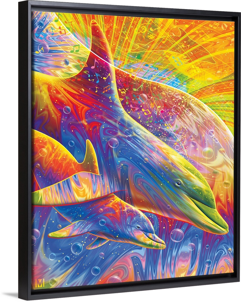 Contemporary Art Graphic Art Multicolor Wall Art Michael David Ward Wildlife Marine Life Dolphin Yellow Wall Art