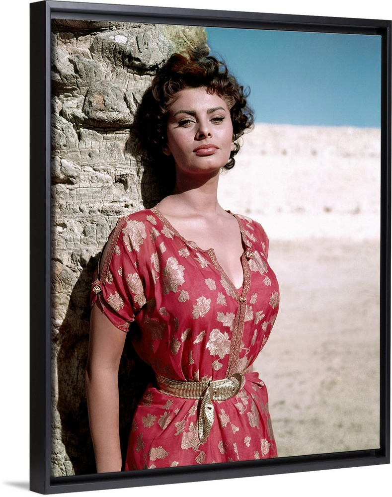 <p>Vintage publicity photo of actress Sophia Loren on the beach.</p>