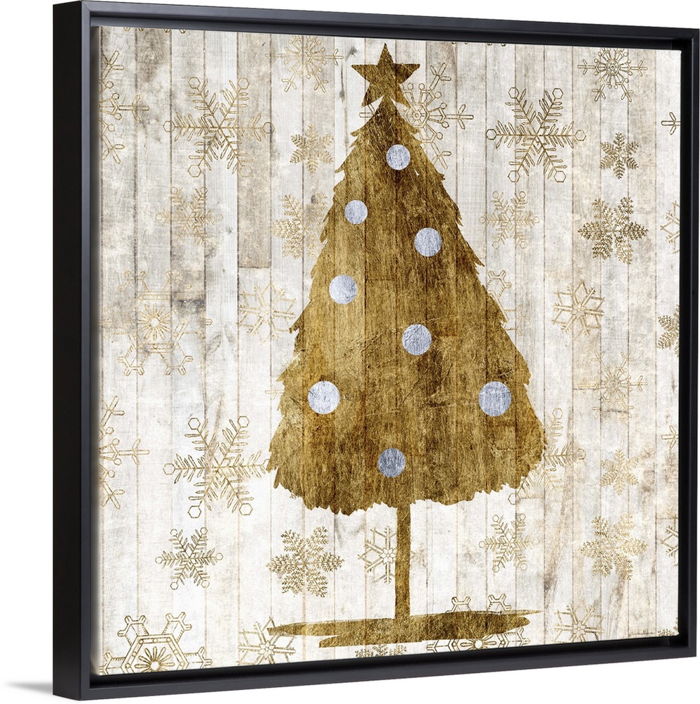 <p>Contemporary Christmas decor of a tree in gold tones.</p>