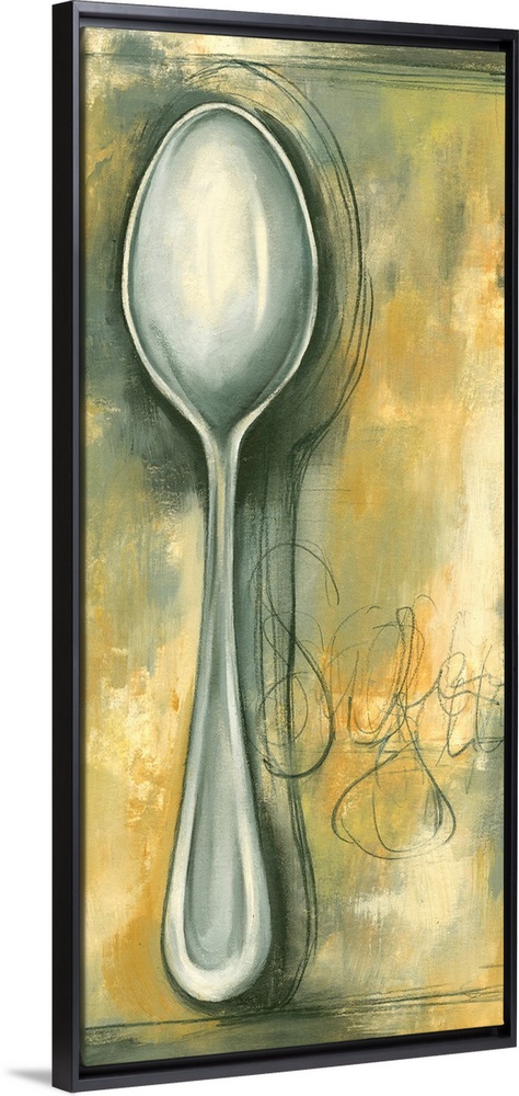 <p>Tall painting of a spoon against an abstract background.</p>