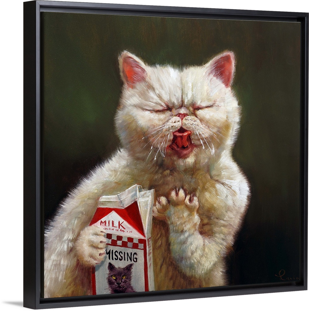 <p>A funny contemporary painting of a cat licking milk from a milk carton.</p>