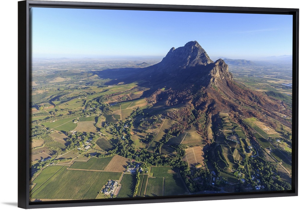 <p>South Africa, Western Cape, Stellenbosch, Aerial View over the Valley and Wine Estates.</p>