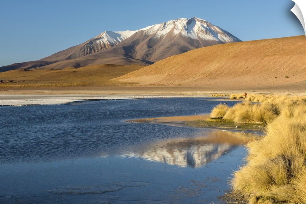<p>South America, Andes, Altiplano, Bolivia, Laguna Hedionda with Ollague Volcano in the background</p>