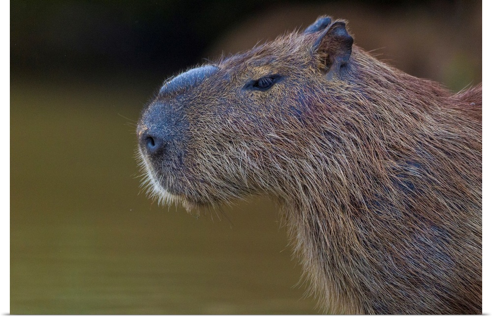 <p>South America. Brazil. A capybara (Hydrochoerus hydrochaeris) is a rodent commonly found in the Pantanal, the world's largest tropical wetland area, and a UNESCO World Heritage Site.</p>