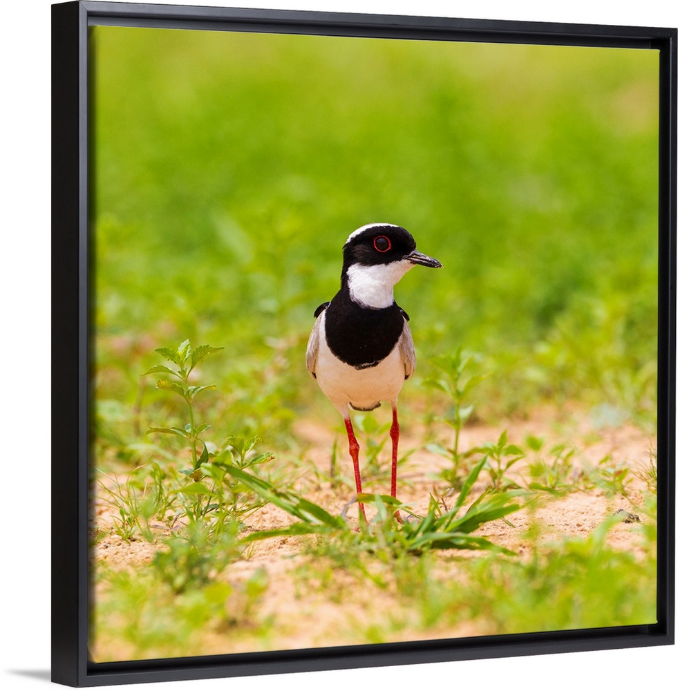 <p>South America. Brazil. A pied lapwing (Vanellus cayanus) along the banks of a river in the Pantanal, the world's largest tropical wetland area, and a UNESCO World Heritage Site.</p>