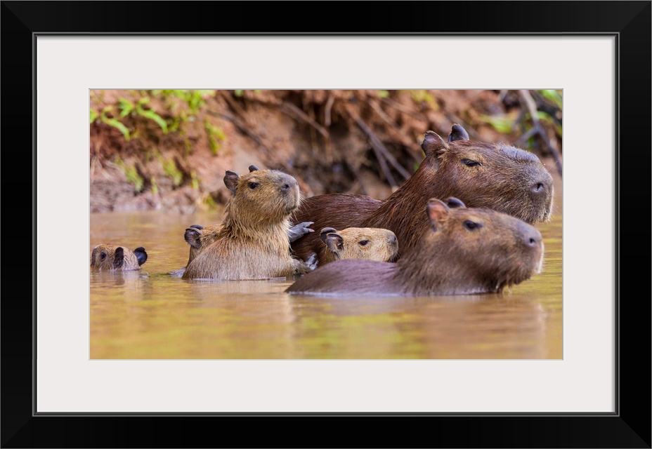 <p>South America. Brazil. Capybaras (Hydrochoerus hydrochaeris) are rodents commonly found in the Pantanal, the world's largest tropical wetland area, and a UNESCO World Heritage Site.</p>