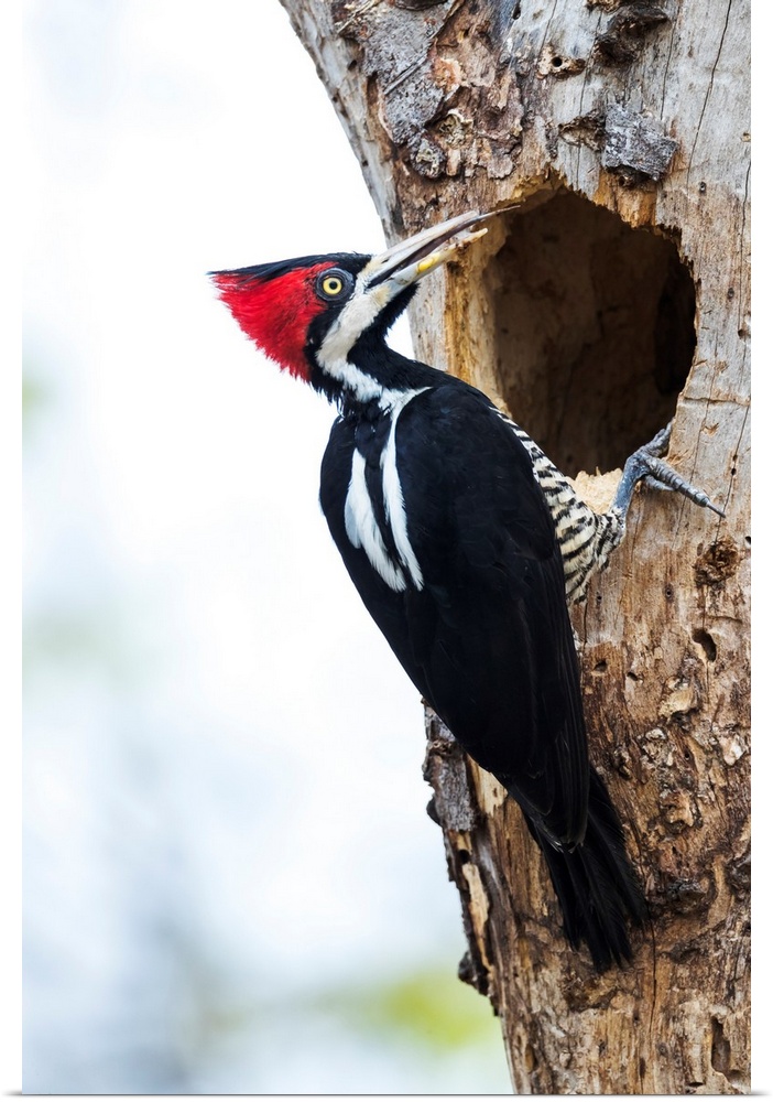 <p>South America, Brazil, The Pantanal, crimson-crested woodpecker, Campephilus melanoleucus. Female crimson-crested woodpecker at the nest hole.</p>