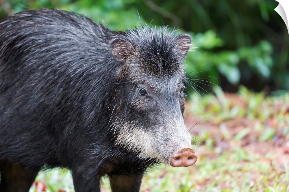 <p>South America, Brazil, Mato Grosso do Sul, white-lipped peccary, Tayassu pecari. Portrait of a female white-lipped peccary.</p>