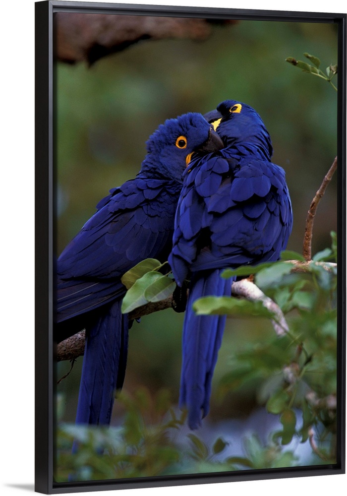 <p>South America, Brazil, Pantanal. Hyacinth Macaw pair in tree roost.</p>