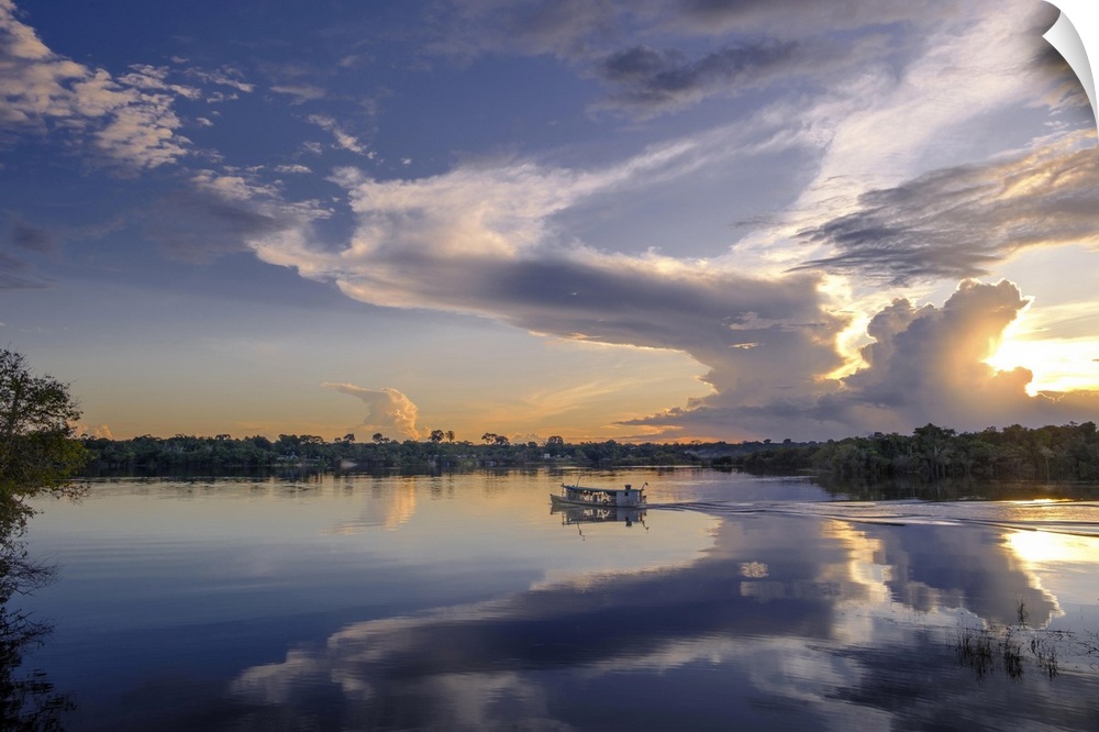 <p>South America, Brazil, Roraima, Brazilian Amazon, Rio Negro Basin, Jauaperi River, Central Amazon Conservation Complex, the largest protected area in the Amazon Basin, sunset over the Jauaperi River.</p>