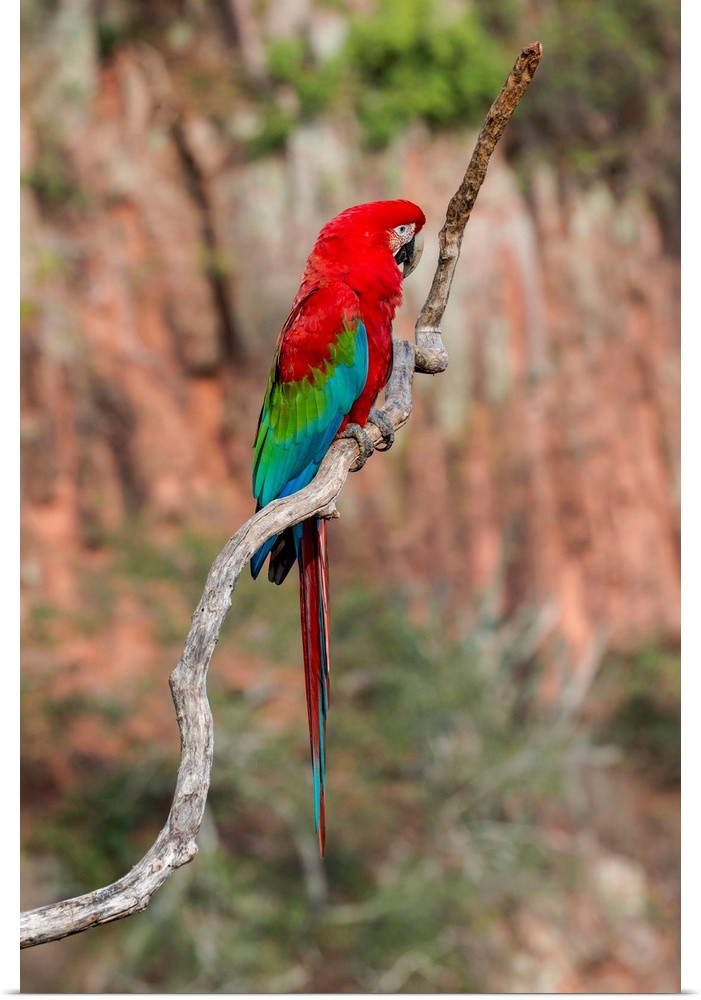 <p>South America, Brazil, Mato Grosso do Sul, Jardim, Sinkhole of the Macaws, red-and-green macaw, Ara chloropterus. Portrait of a single red-and-green macaw. .</p>