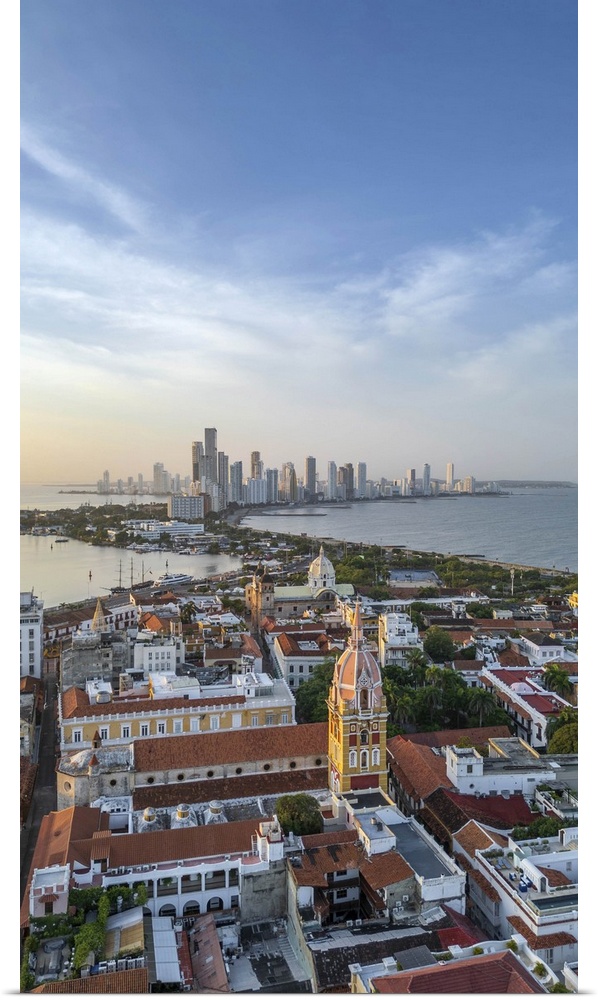 <p>Americas, South America, Colombia, Cartagena, aerial views of the old colonial Spanish port city of Cartagena on the Colombian Caribbean coast.</p>