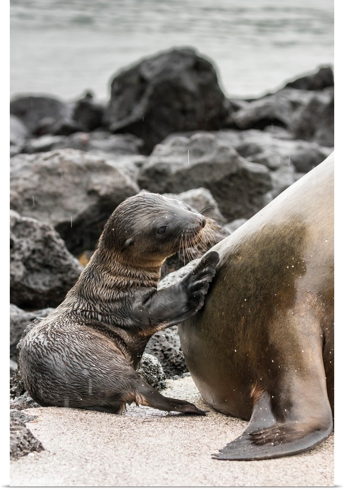 <p>South America, Ecuador, Galapagos National Park. Sea lion and pup.</p>
