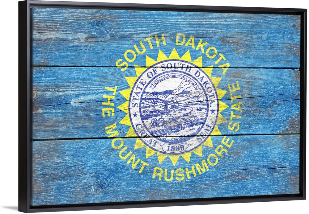 <p>The flag of South Dakota with a weathered wooden board effect.</p>