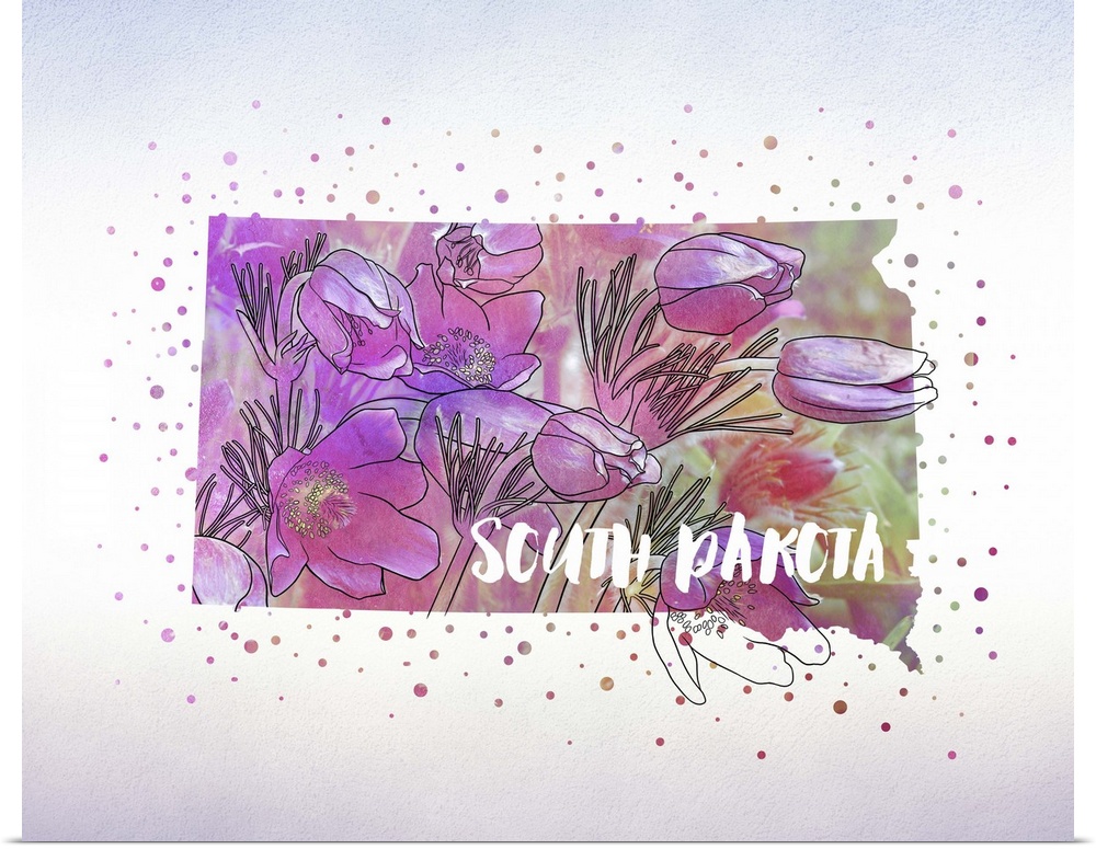 <p>Outline of the state of South Dakota filled with its state flower, the American Pasque.</p>