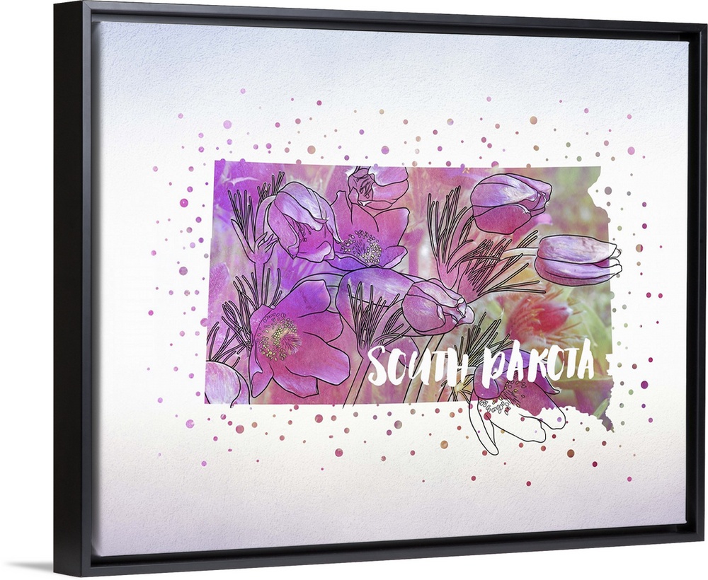 <p>Outline of the state of South Dakota filled with its state flower, the American Pasque.</p>