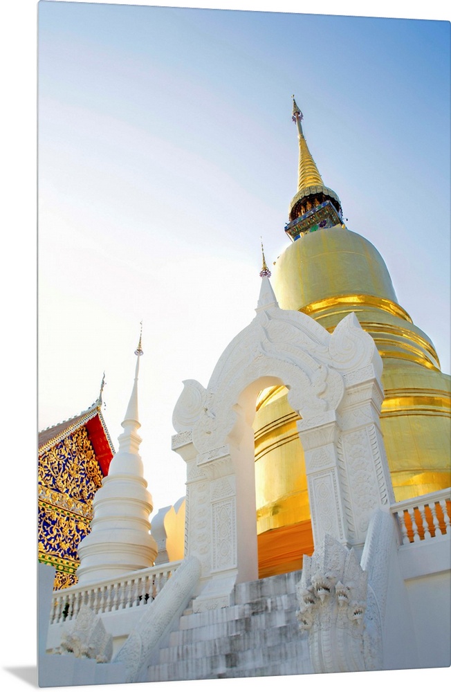 <p>South East Asia, Thailand, Lanna, Chiang Mai, Wat Wat Suan Dok, golden stupa (chedi) and principal bot.</p>