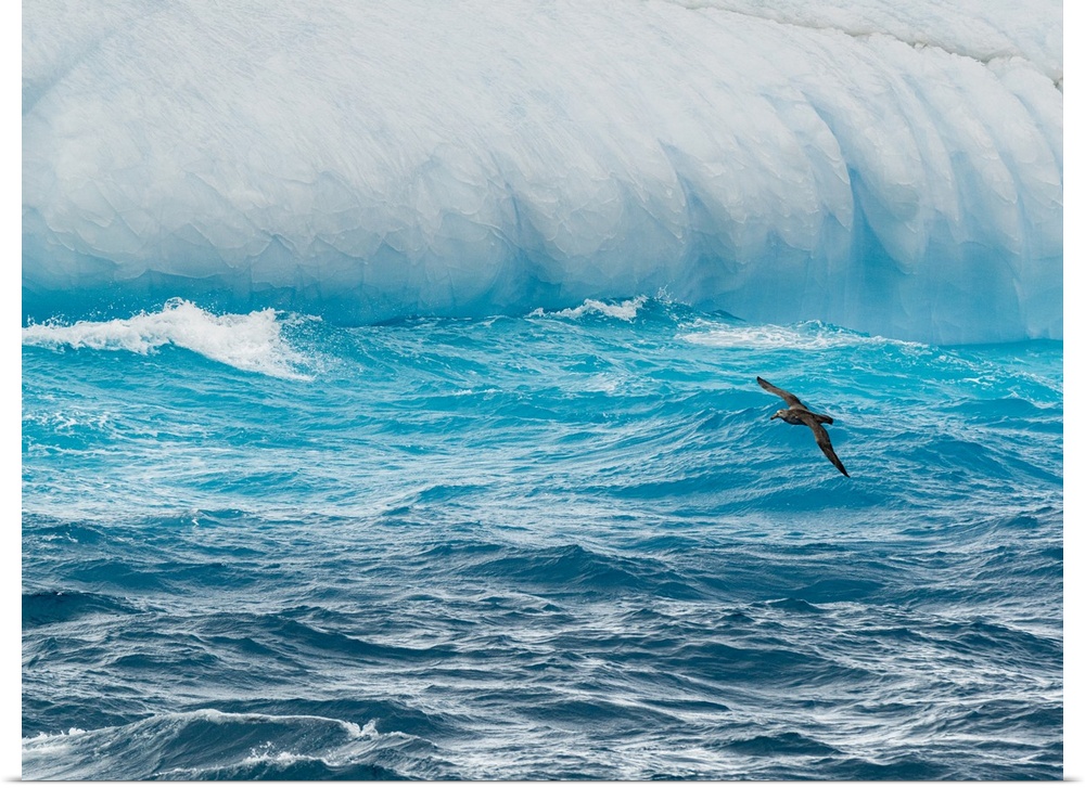 <p>South Georgia Island. Iceberg and giant petrel flies low over the waves.</p>