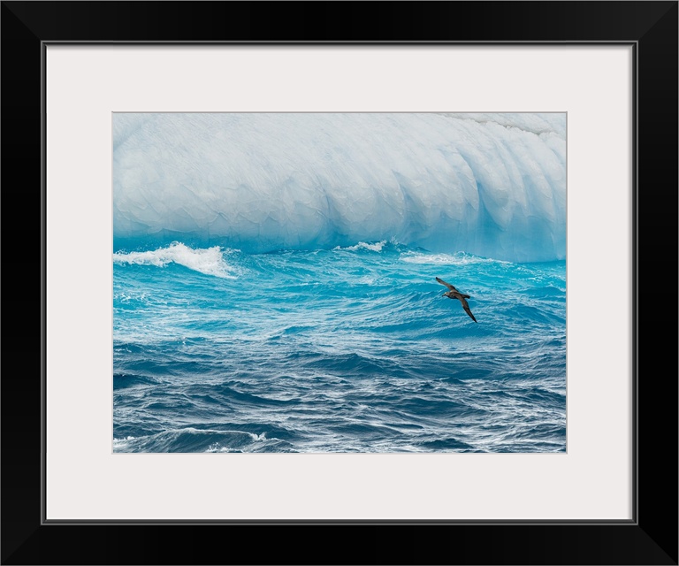 <p>South Georgia Island. Iceberg and giant petrel flies low over the waves.</p>