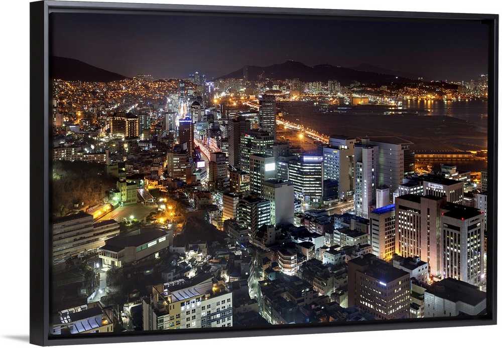 <p>Korea, South Korea, Pusan-si, Pusan, Northern view from the Busan Tower, city center in the foreground and the Busan International Ferry Terminal in the background.</p>