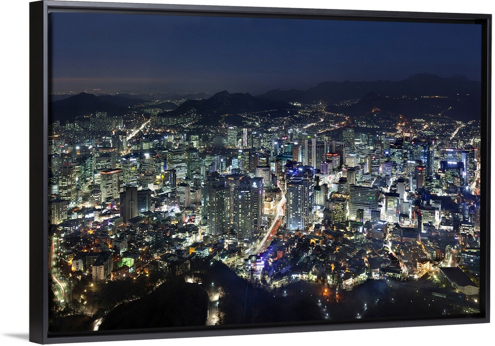 <p>Korea, South Korea, Seoul, Namsan Park, Northern view from N Seoul Tower, Myeong-dong District in the foreground and old Seoul districts at the foot of the hills in the background.</p>