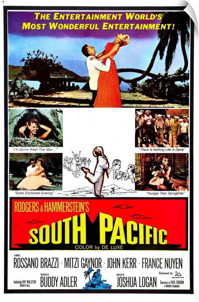 <p>South Pacific, US Poster, Top From Left: Rossano Brazzi, Mitzi Gaynor (And Sailor Suit Center), 1958.</p>