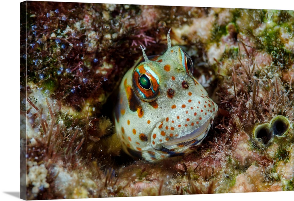 <p>South Pacific, Solomon Islands. Redspotted blenny fish amid coral.</p>