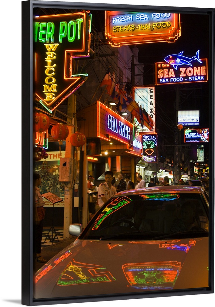 <p>South Pattaya Road, "the strip", one of Thailand's infamous red light districts with neon lights and go-go bars, Pattaya, Northern Gulf of Thailand, 2 hours south of Bangkok, Thailand, Southeast Asia</p>