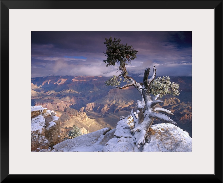 <p>A lone small tree grows on a cliff overlooking the South Rim of the Grand Canyon.</p>