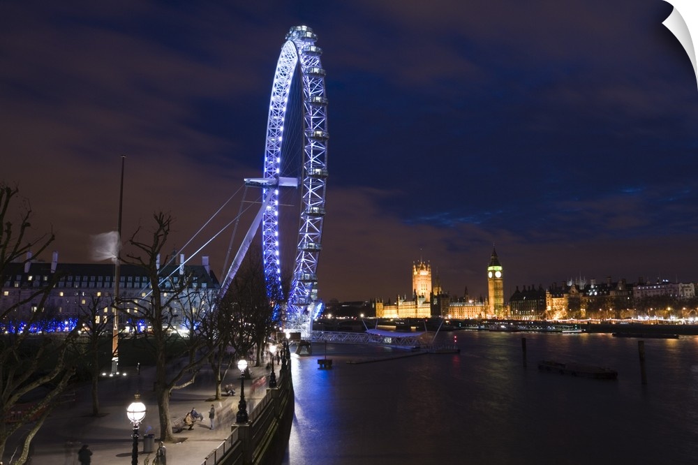 <p>ENGLAND-London:.Southbank-.The London Eye and Houses of Parliament -Evening</p>