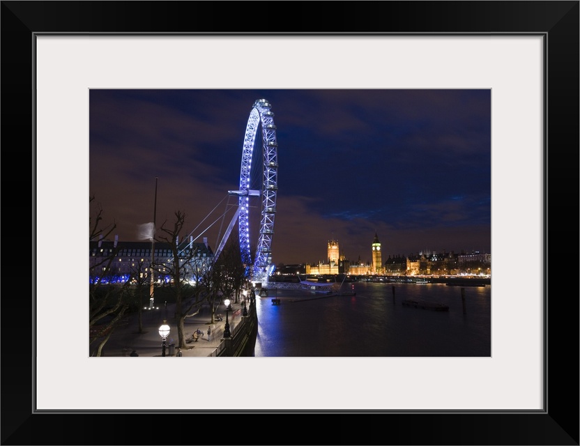 <p>ENGLAND-London:.Southbank-.The London Eye and Houses of Parliament -Evening</p>