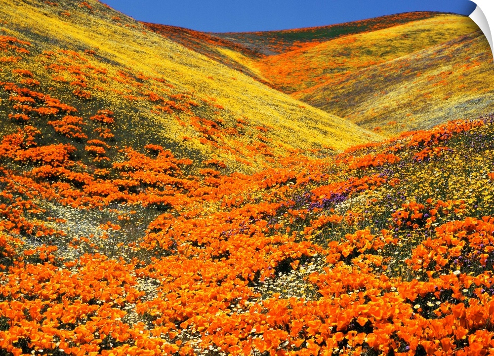 <p>USA, Southern California, View of California golden poppy at Tehachapi mountains</p>
