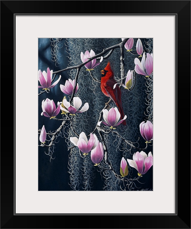 Art Contemporary Art Plants and Flowers Wildlife Florals Wilhelm Goebel Painting Wildlife Bird Cardinal