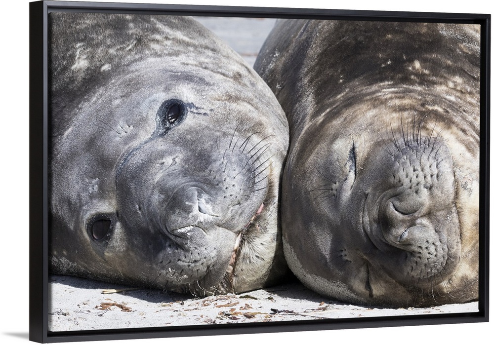 <p>Southern elephant seal (Mirounga leonina), males are social after the breeding season has finished and the harems are dissolved. South America, Falkland Islands, January</p>