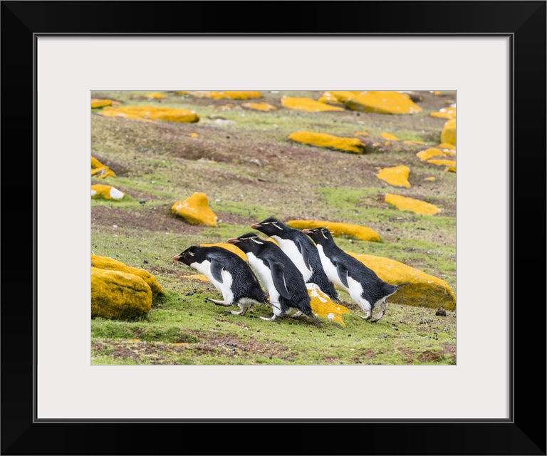 <p>Adult southern rockhopper penguins (Eudyptes chrysocome), on Saunders Island, Falkland Islands, South America</p>