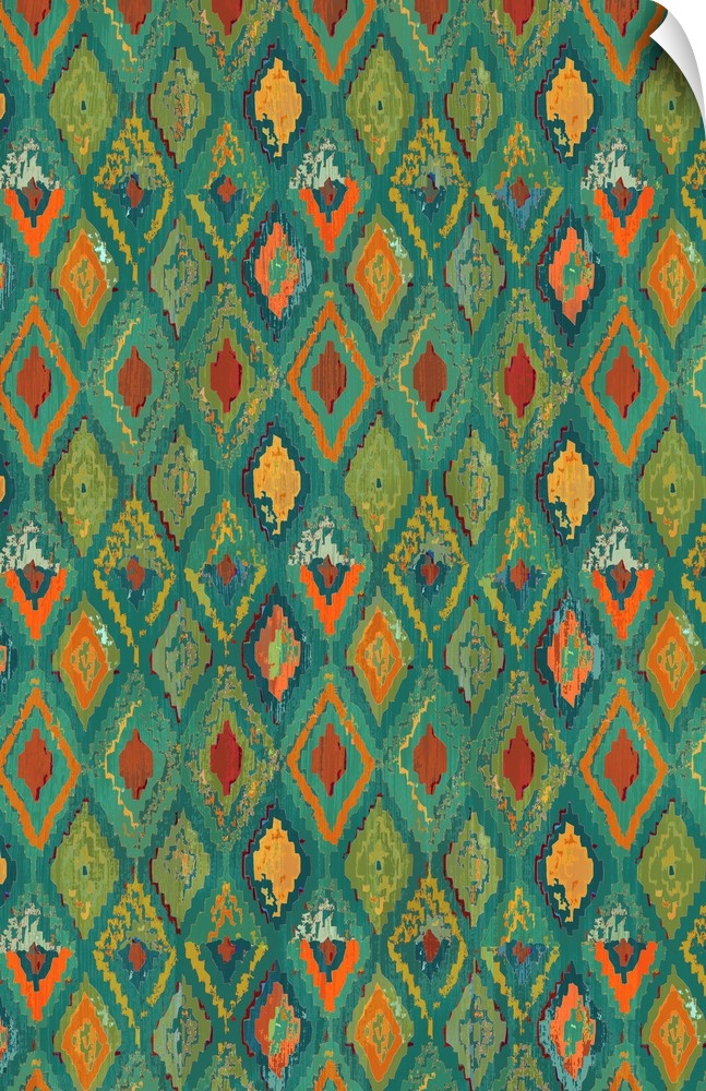 <p>A southwestern style design that has different shades of blue, green, and orange.</p>