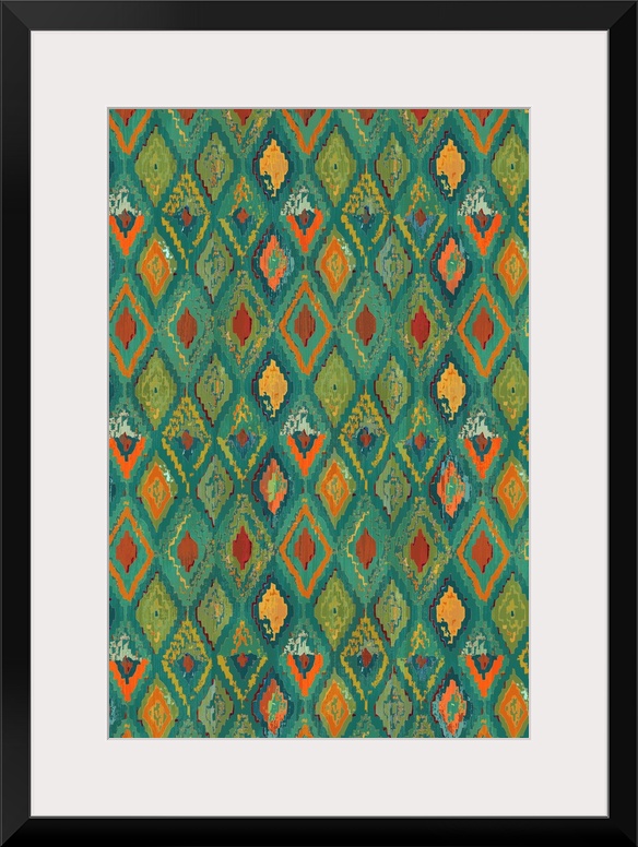 <p>A southwestern style design that has different shades of blue, green, and orange.</p>