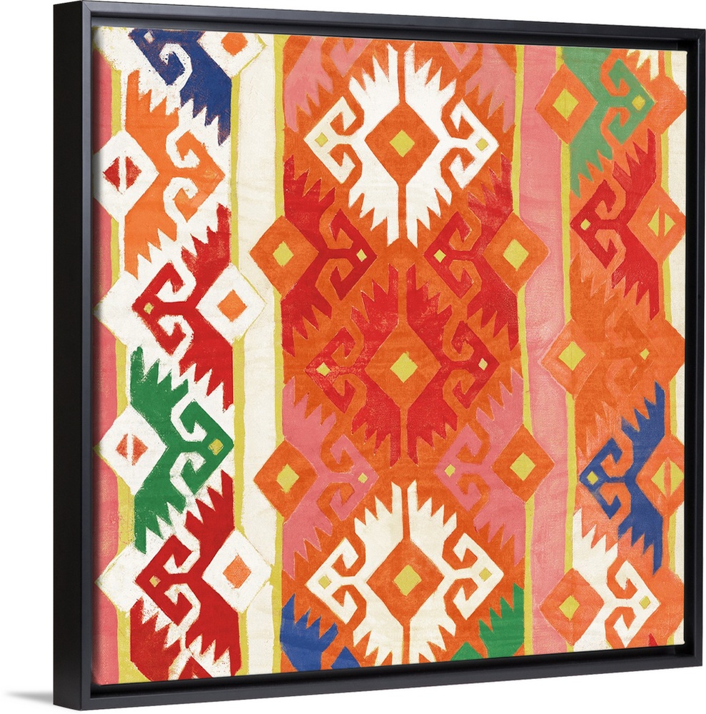 <p>Square artwork of southwest patterns in green, yellow, blue, orange and red.</p>