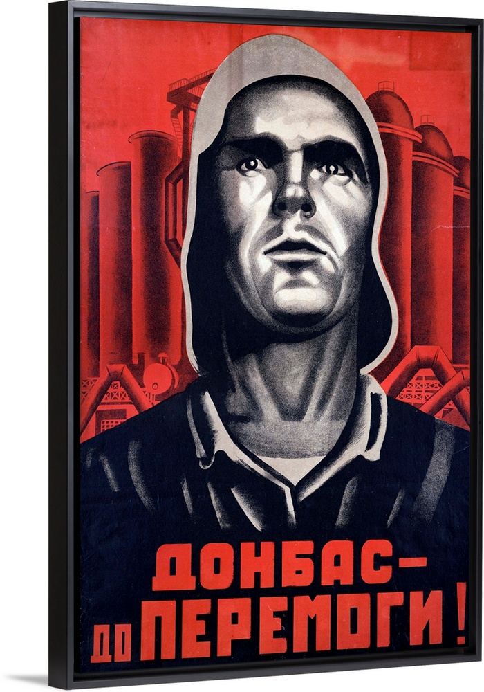 <p>Soviet propaganda poster by an unknown artist entitled Donbas (Until We Overcome), showing the face of a factory worker in front of factory buildings in the Ukraine. Lithograph, circa 1930-35. Private collection.</p>