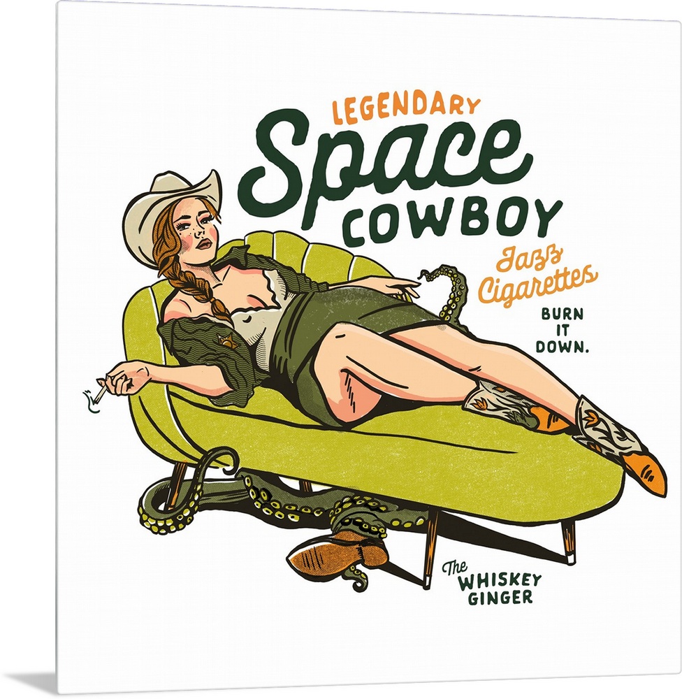 Art Howdy Cowgirl Decorative Art The Whiskey Ginger Graphic Art Green Wall Art People Figurative Western