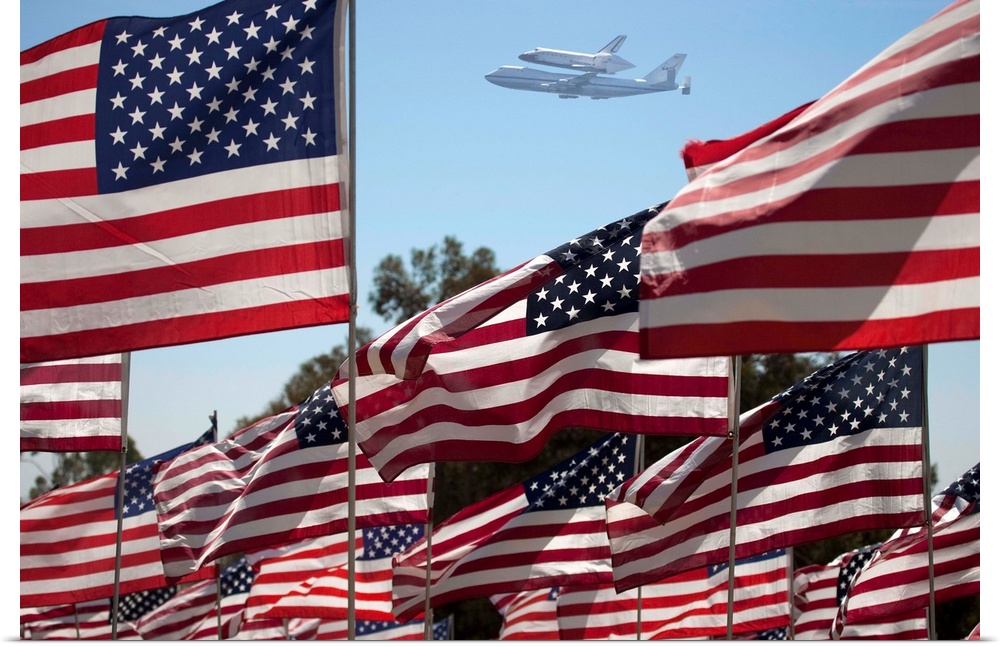 <p>The final flight of the Space Shuttle Columbia flies on 9/21/12 over US Flags at Peperdine University in Malibu, CA</p>