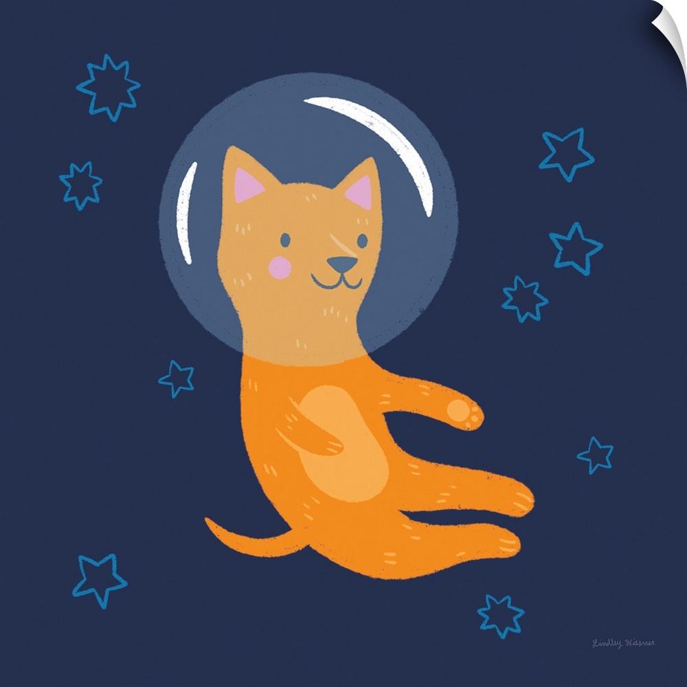 Art Children's Art Nursery Decorative Art Graphic Art Painting Space Astronaut Cat