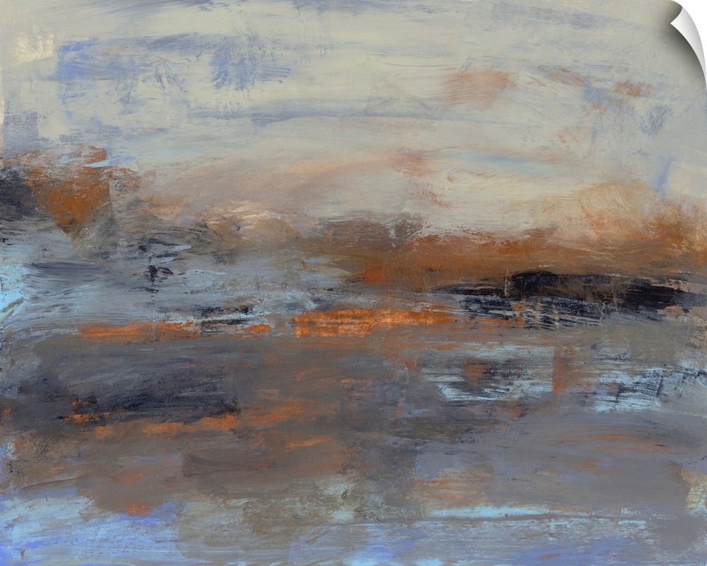 <p>Sharon Gordon creates abstract paintings inspired by the landscape surrounding her. She states, "I am and have always been completely captivated by places near or surrounded by water, especially the ocean. Experiencing a vista, particularly involving bodies of water, enhances the idea that an atmosphere can be an ever-changing, never-ending range of rhythm and volatility while remaining consistently whole." With her art, Gordon intends to evoke and "internal landscape," giving viewers the chance to transport themselves into a larger vista and recalling moments of time and space that they may have visited before.</p>