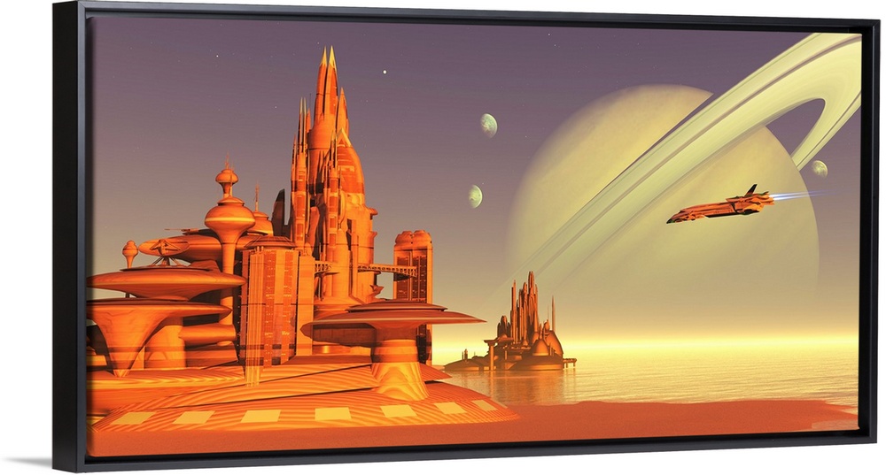 <p>Spacecraft delivering supplies to a colony on Titan, one of Saturn's moons.</p>