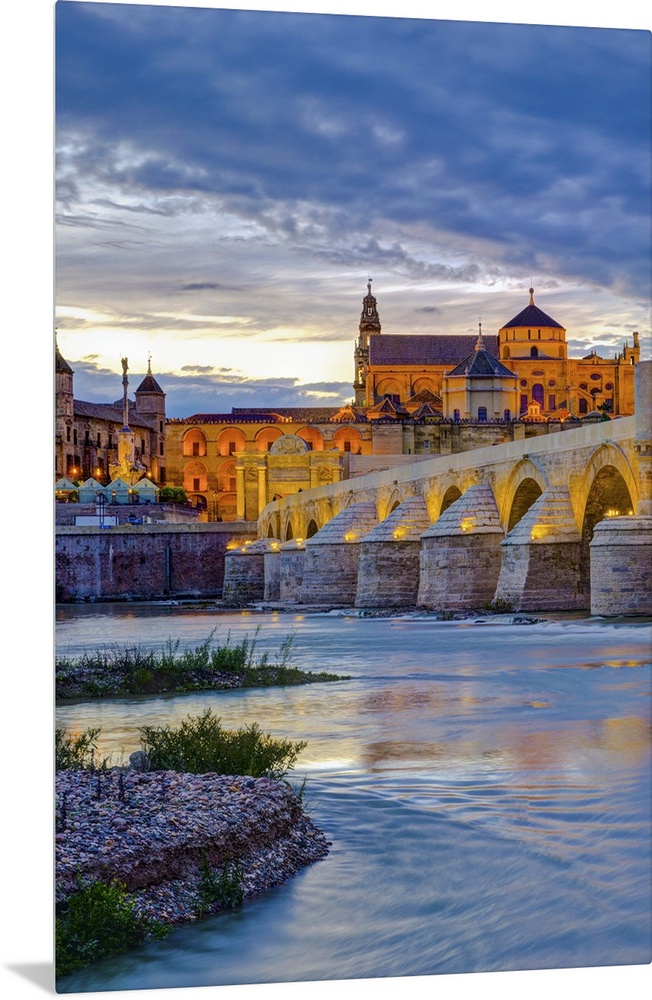 <p>Spain, Andalucia, Cordoba Province, Cordoba, Roman Bridge (Puente Romano) over Guadalquivir River and Mezquita (Mosque...Cathedral of Cordoba, UNESCO World Heritage Site)</p>