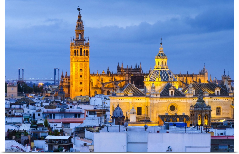 <p>Spain, Andalucia, Seville Province, Seville, Cathedral of Seville, The Giralda Tower (La Giralda) and Church of the Saviour (Iglesia del Salvador)</p>