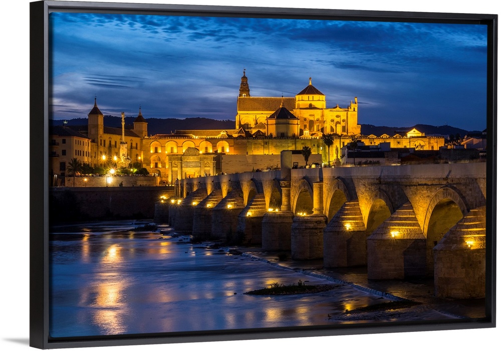 <p>Spain, Andalusia. Cordoba. The Roman bridge across the Guadalquivir river at dusk.</p>