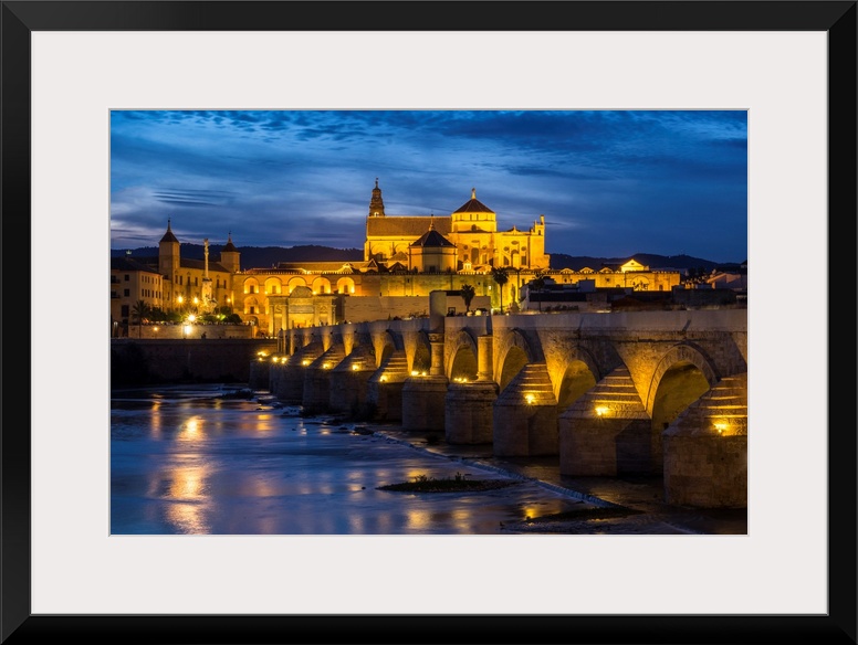 <p>Spain, Andalusia. Cordoba. The Roman bridge across the Guadalquivir river at dusk.</p>