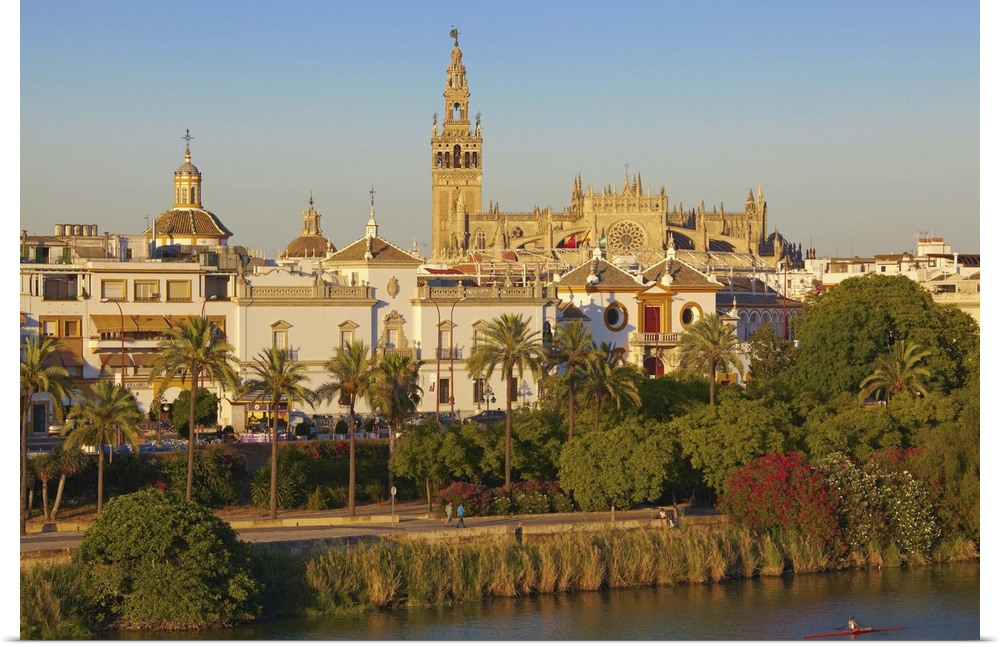 <p>Spain, Andalusia, Mediterranean area, Seville, Guadalquivir river with the Cathedral in background</p>
