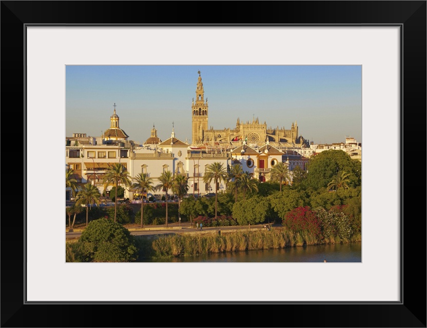 <p>Spain, Andalusia, Mediterranean area, Seville, Guadalquivir river with the Cathedral in background</p>